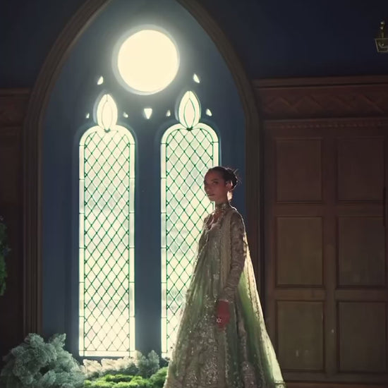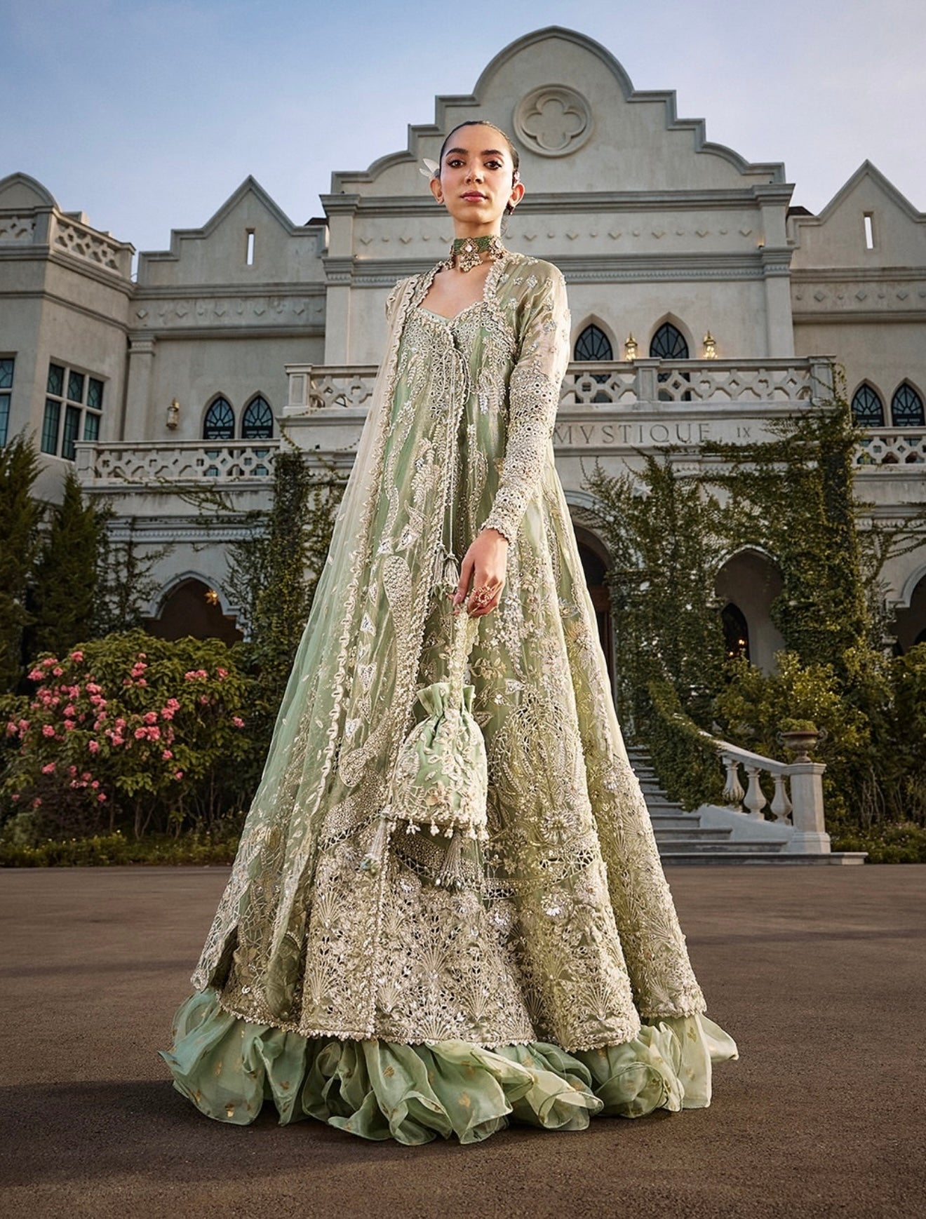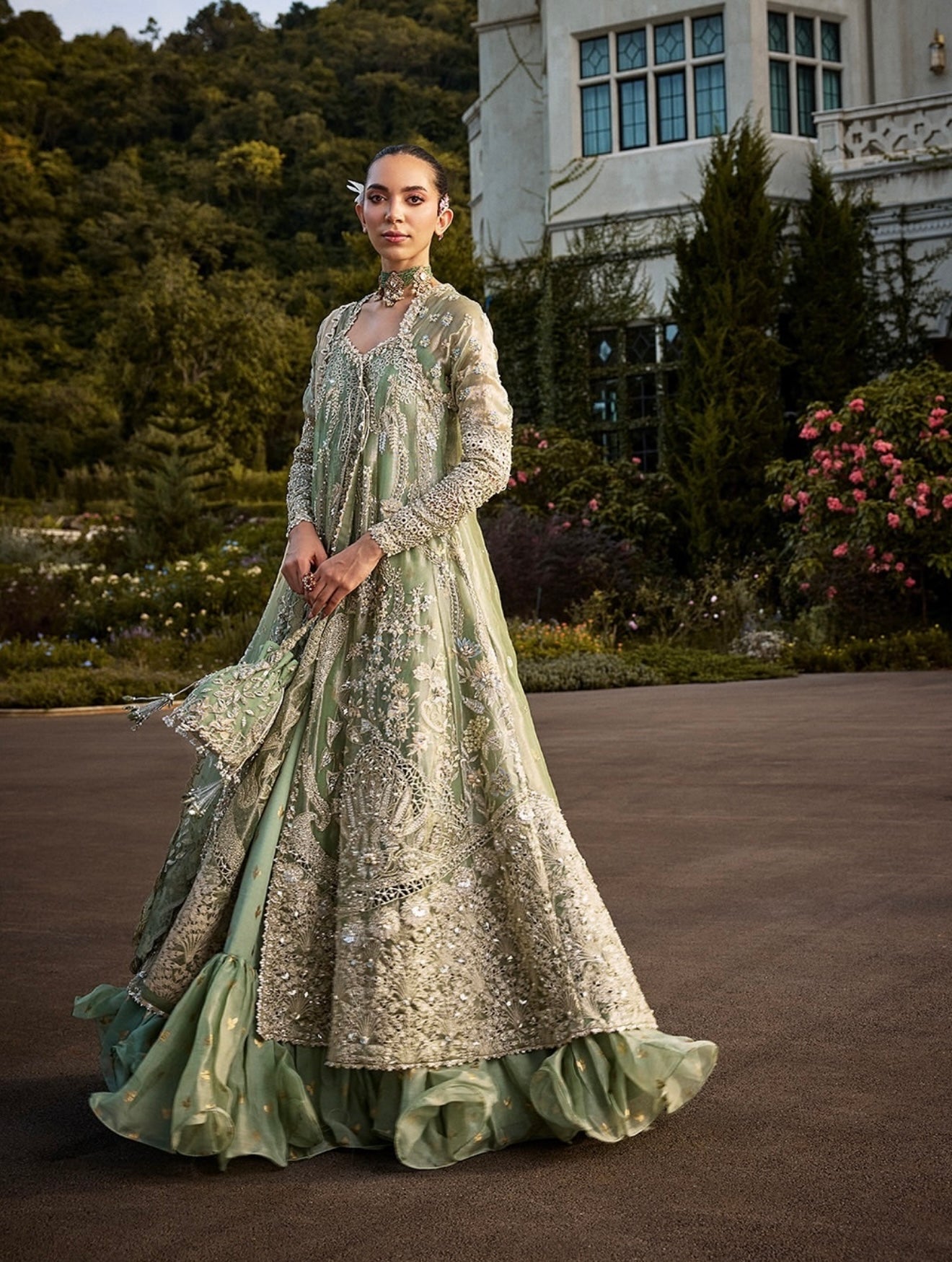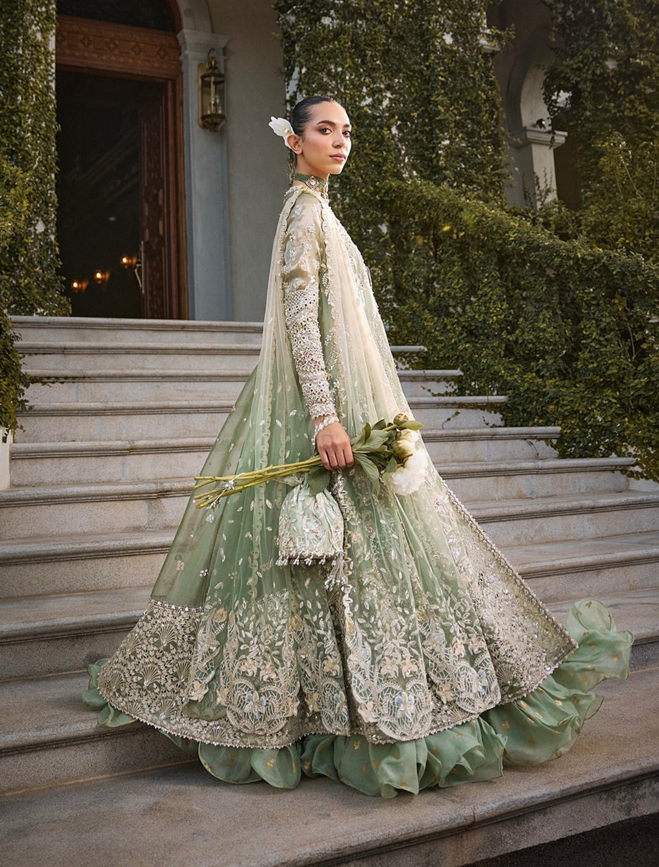 Tissue material hand embellished dress with inner slip, skirt with organza ruffle and dupatta.