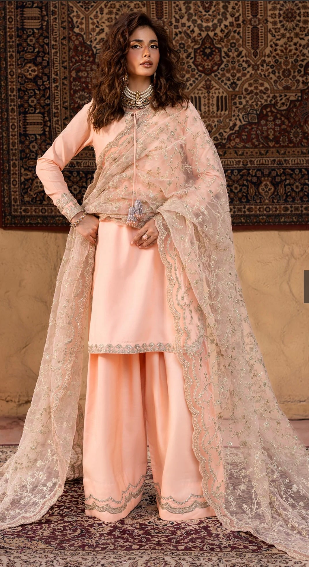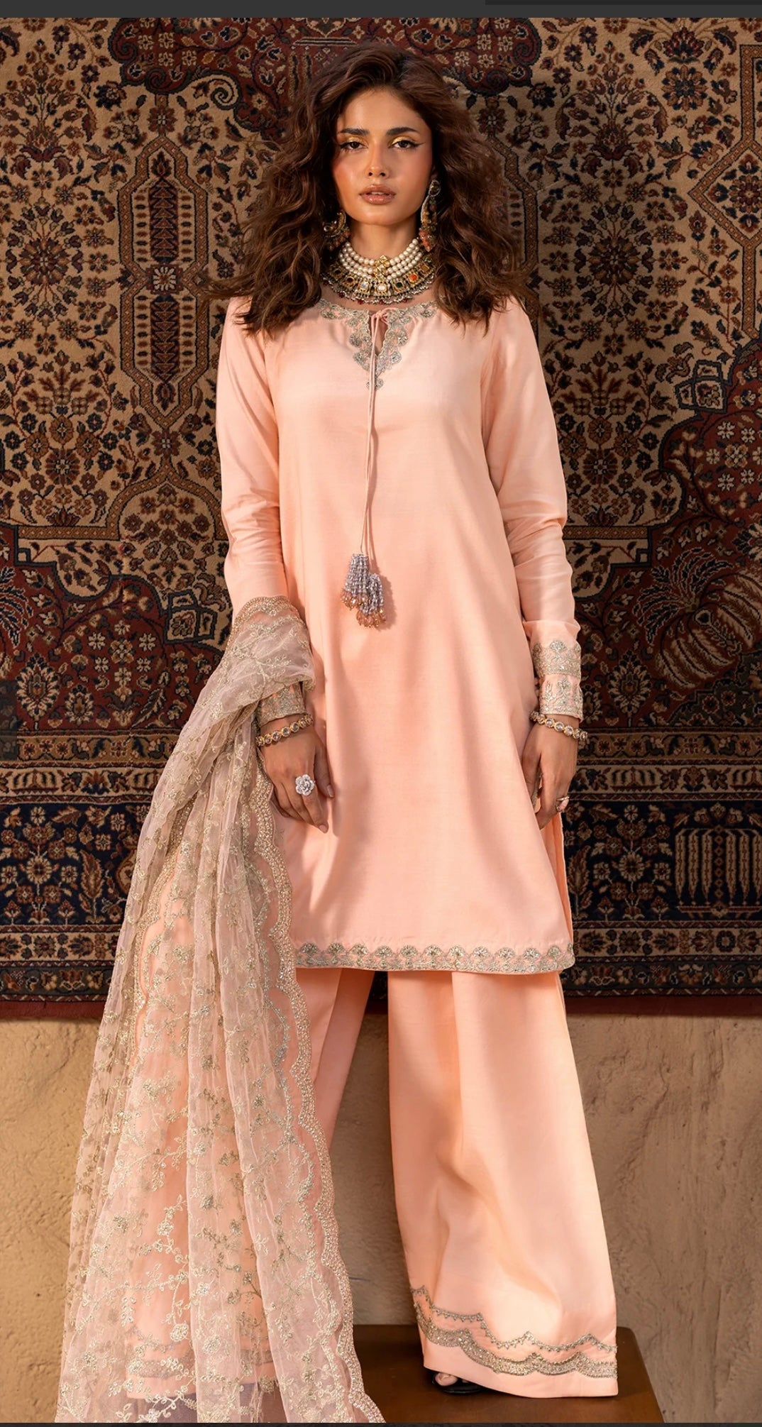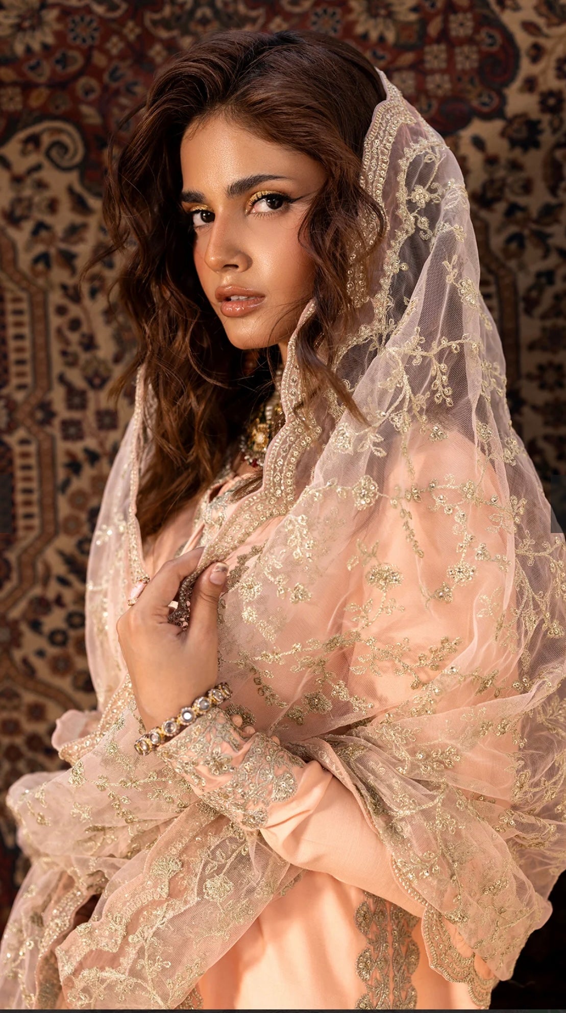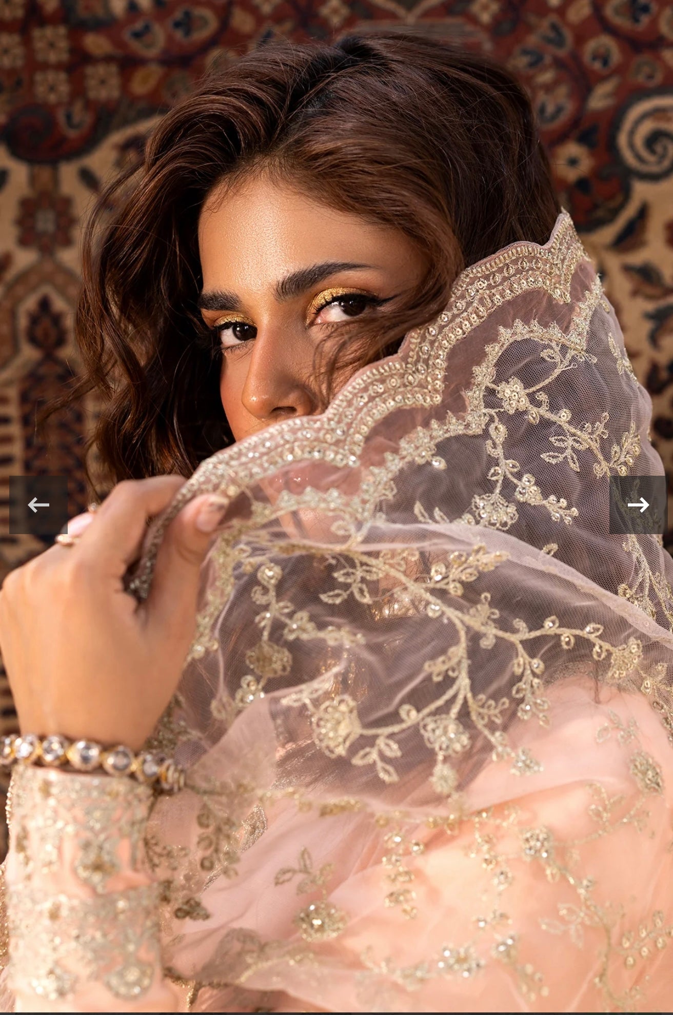 Poly Net Dupatta with embroidered 4 side dupatta pallu lace.
