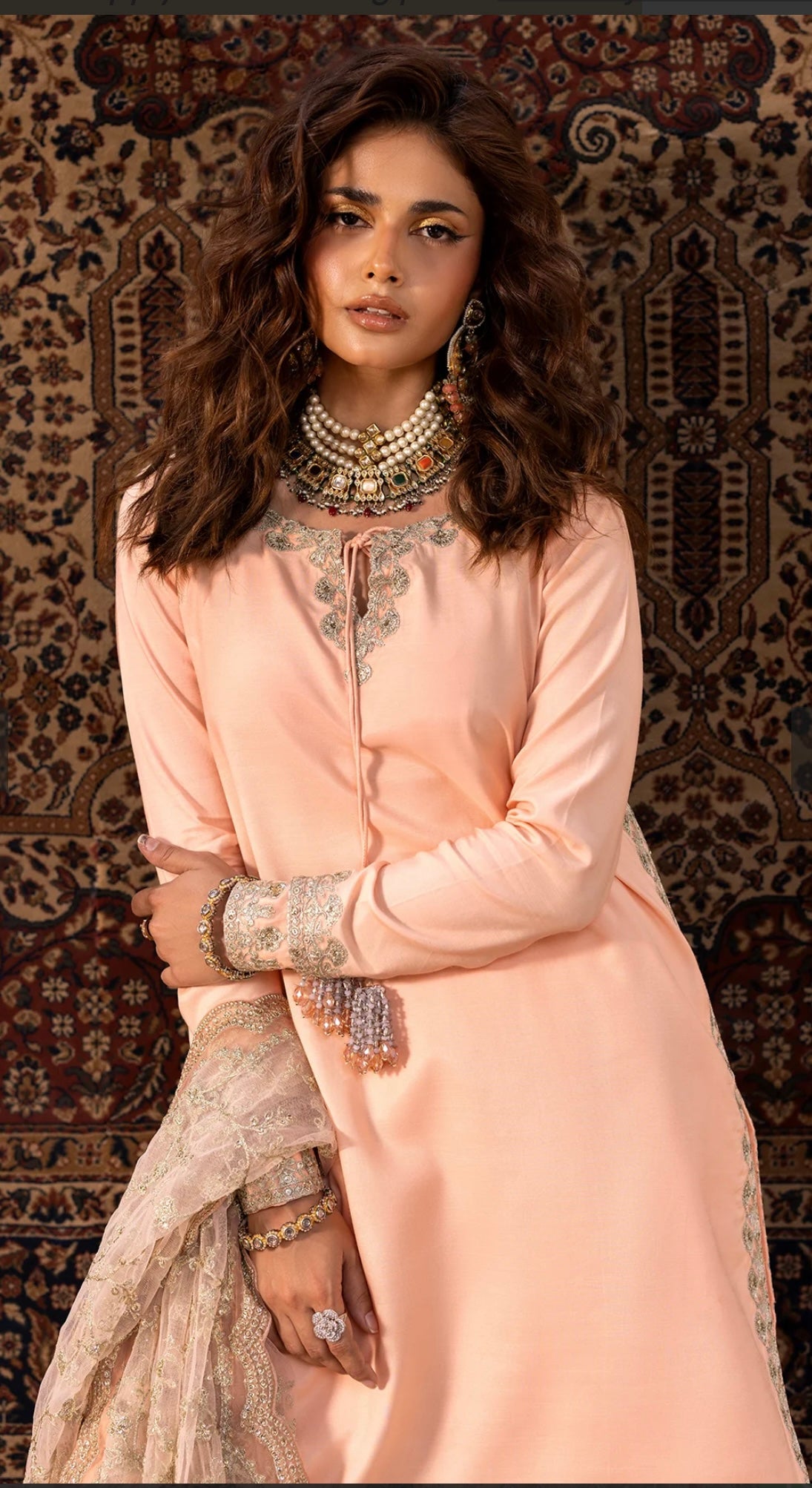 Raw Silk Shirt llwith embroidered sleeves and embroidered front back chok lace.Embellished with Adda Work and Patch Work.