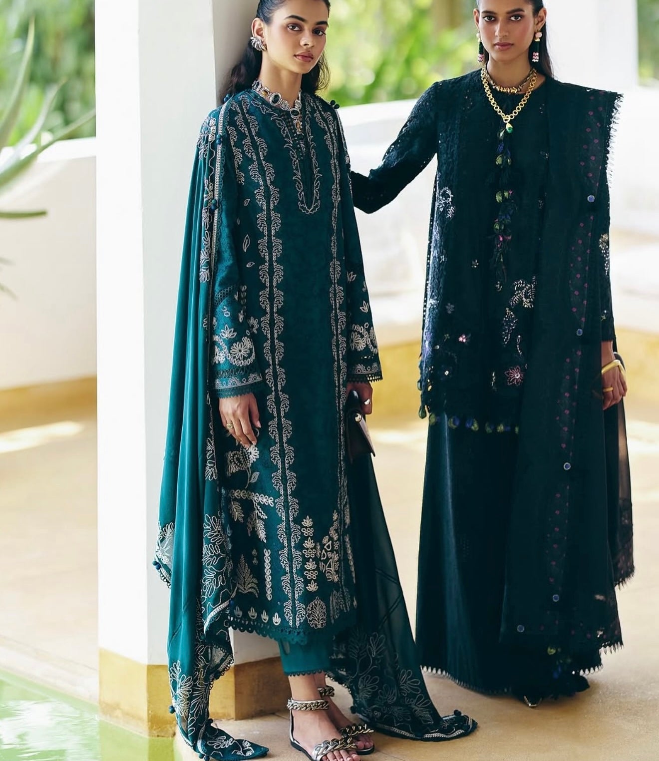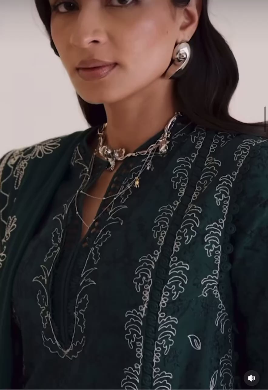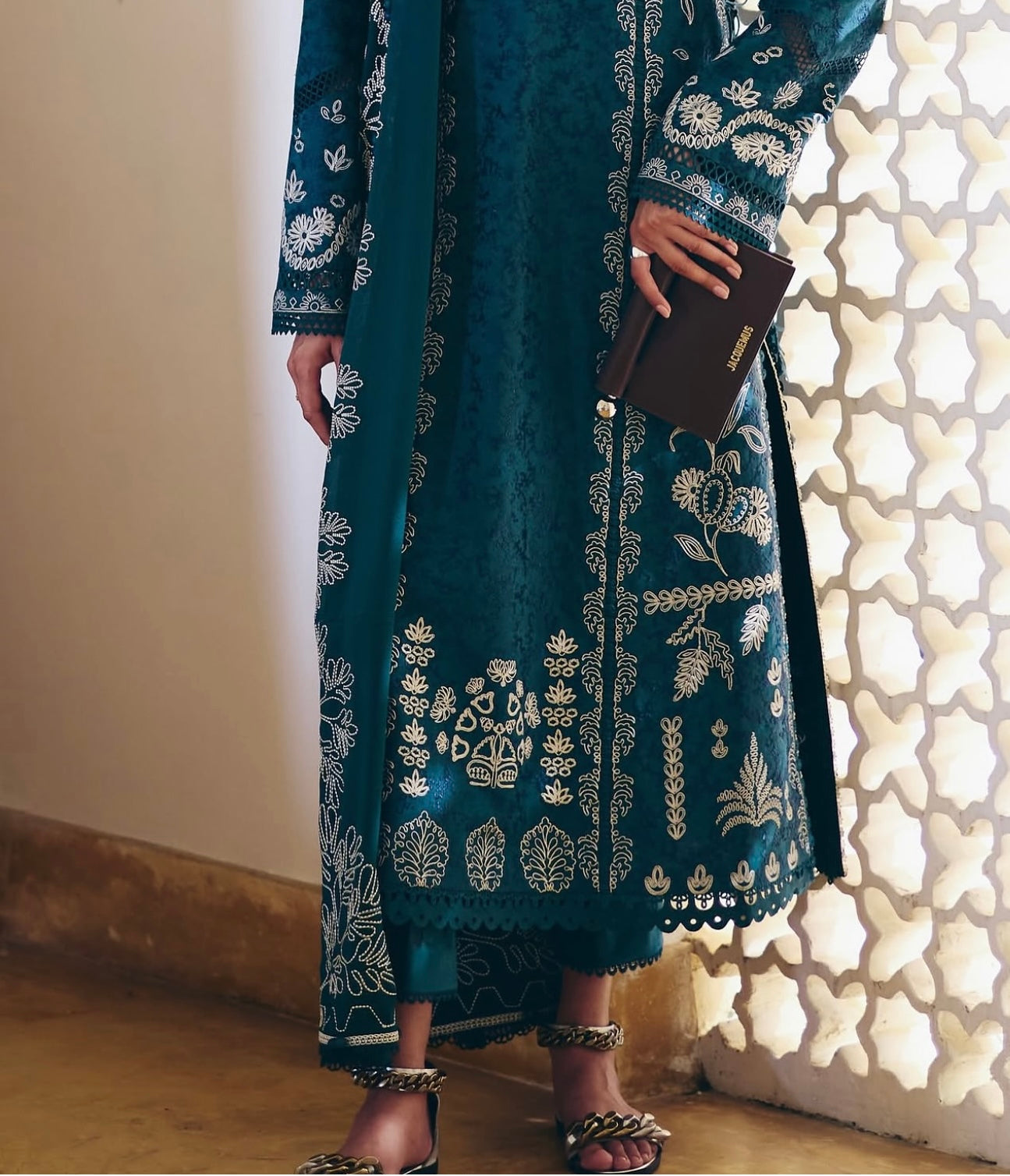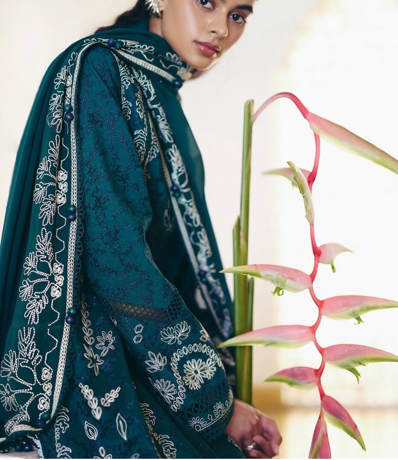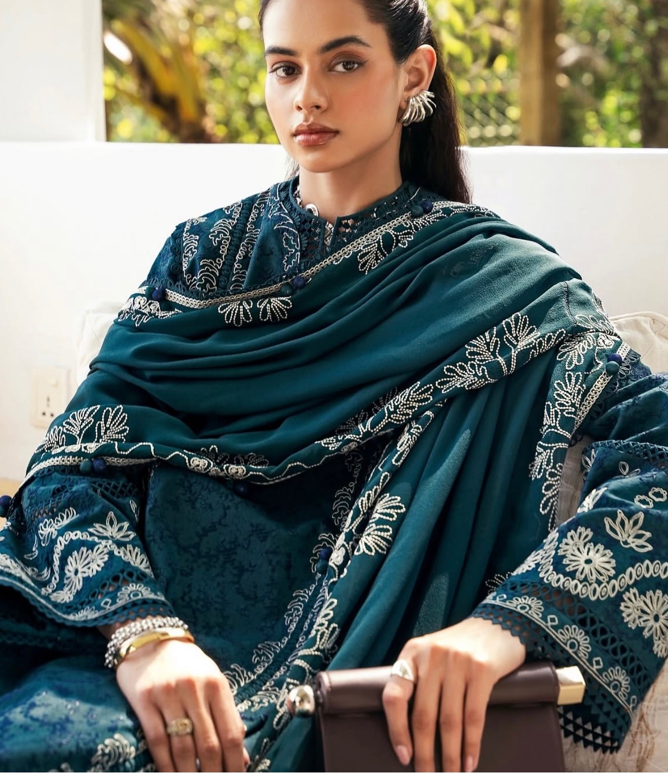 The dupatta is made of chiffon in a complementary tone. It has four sided contrasting embroidery and is finished with lace and tassel details.