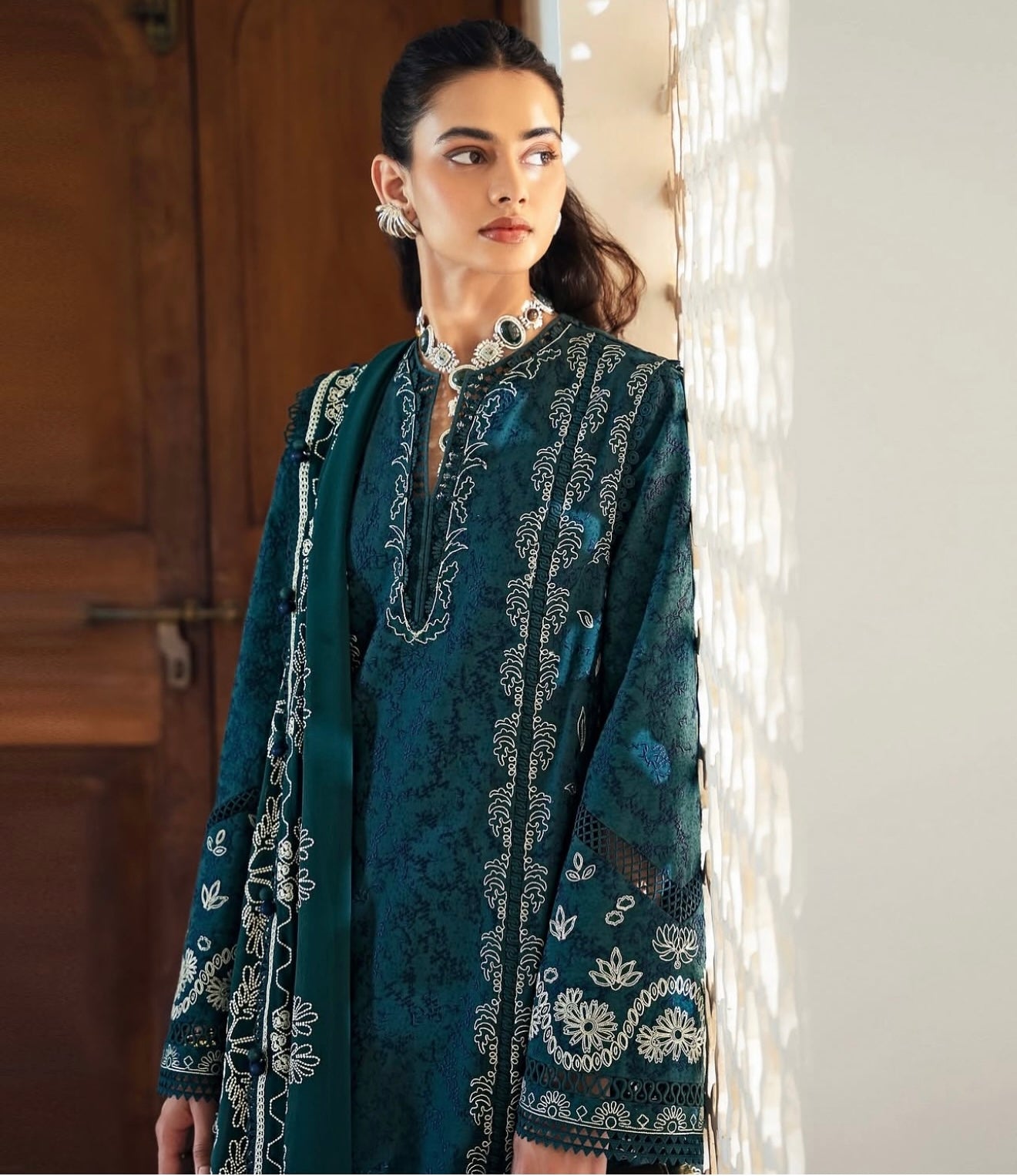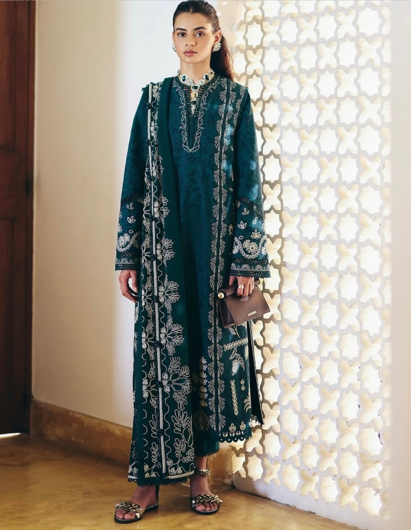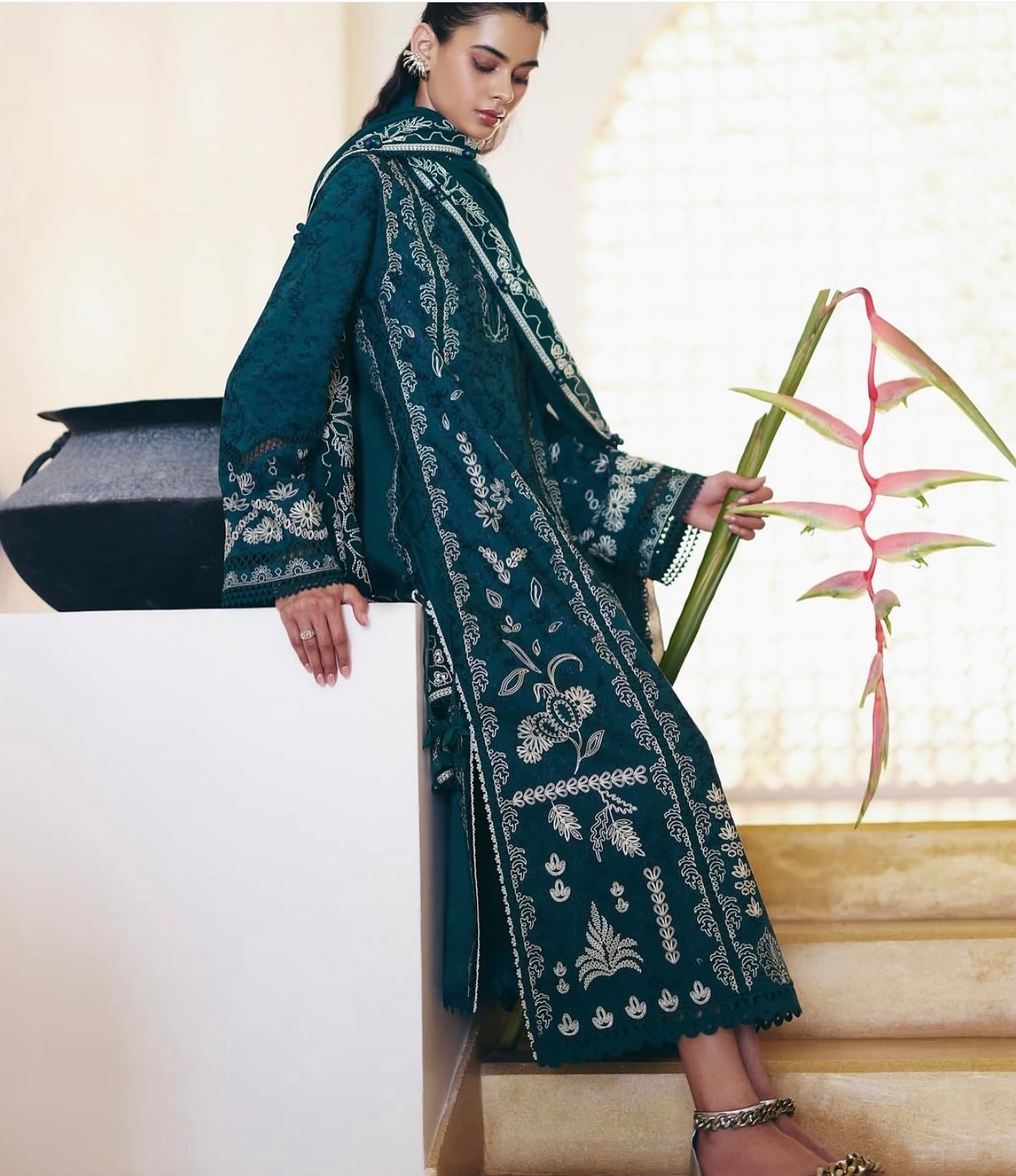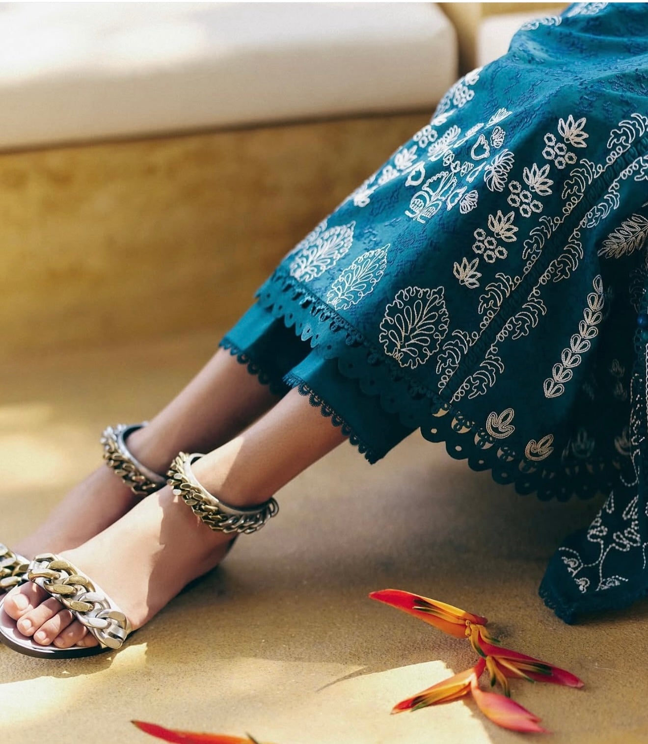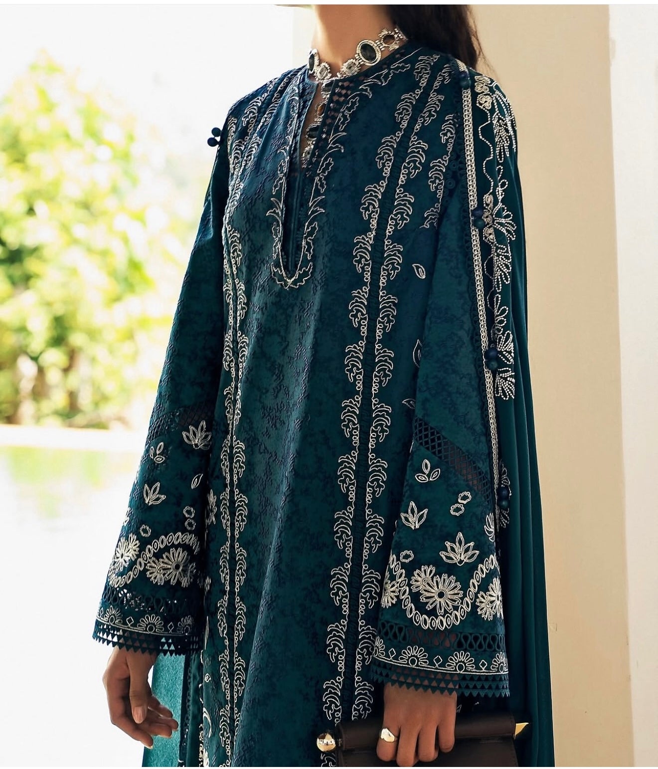 The dupatta is made of chiffon in a complementary tone. It has four sided contrasting embroidery and is finished with lace and tassel details.
