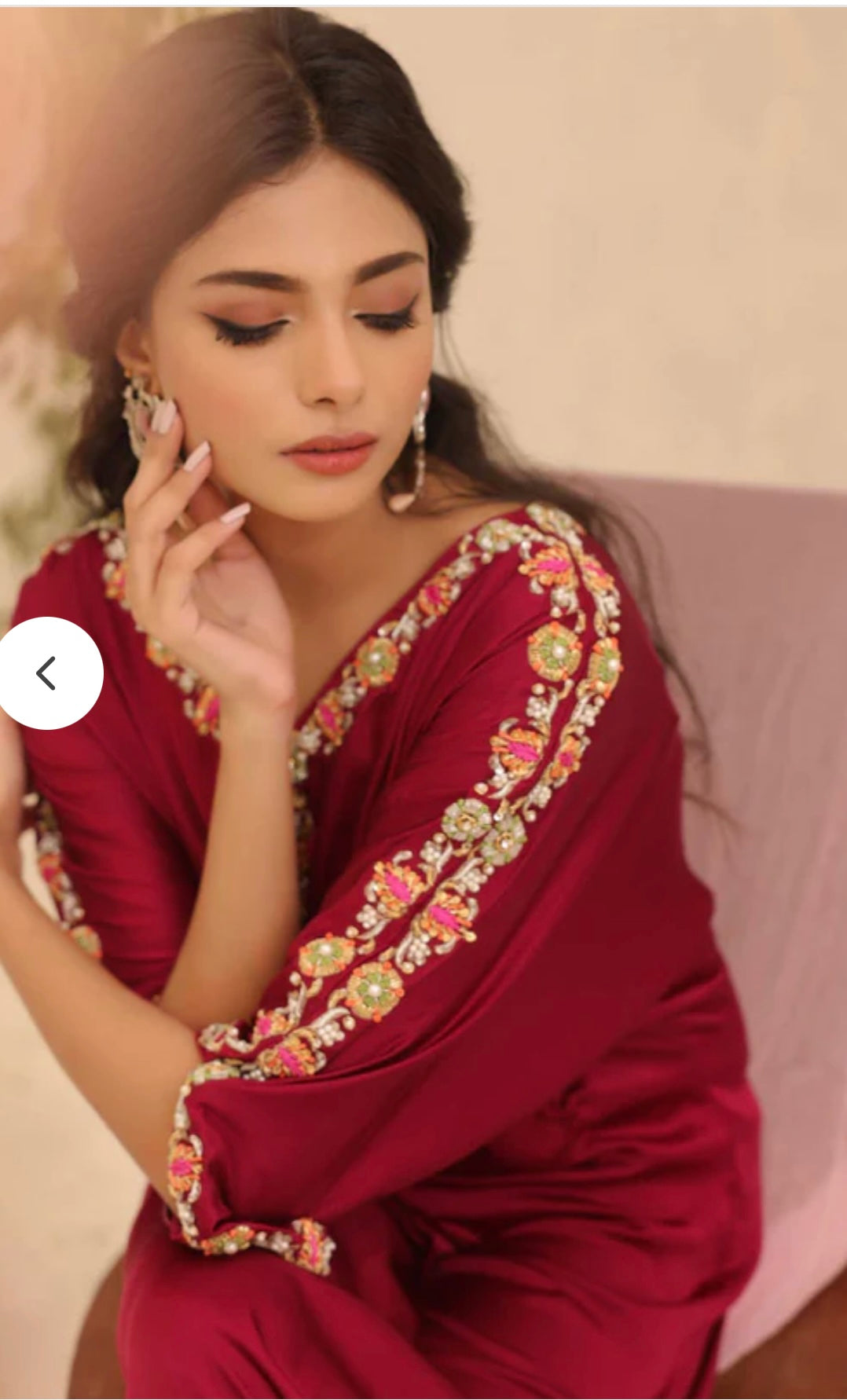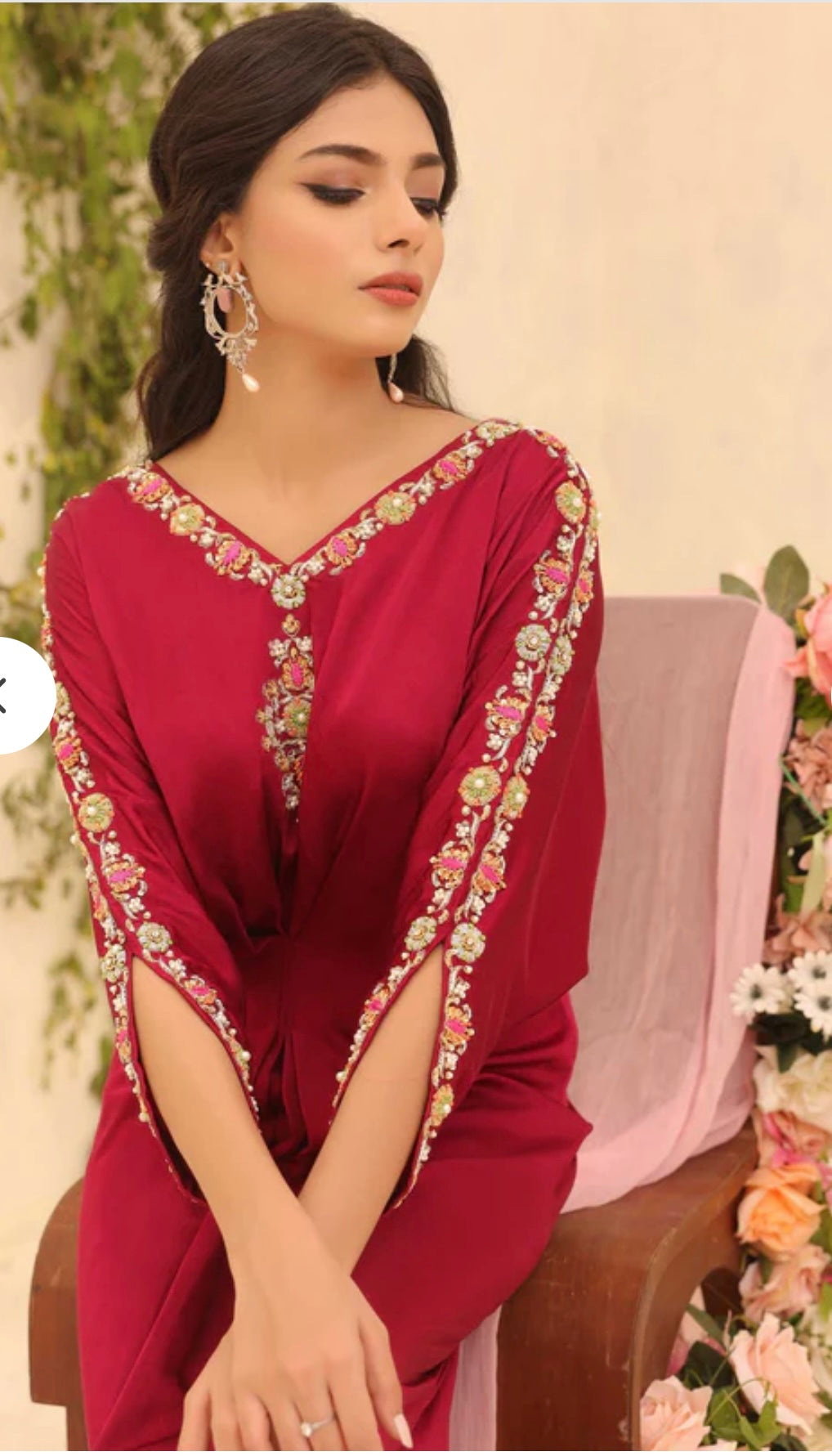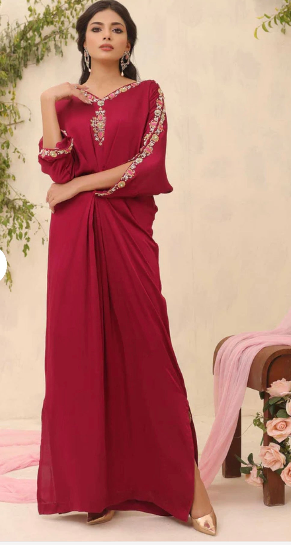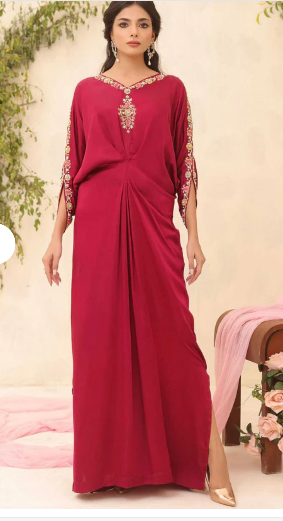 Additional Description: A Korean silk fully hand embellished caftan. Handwork on the neckline and sleeves.