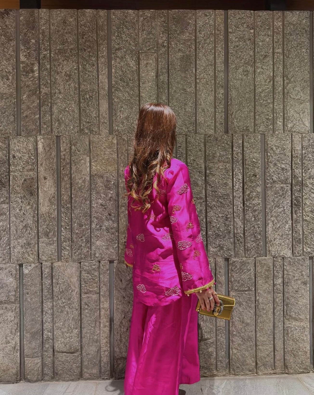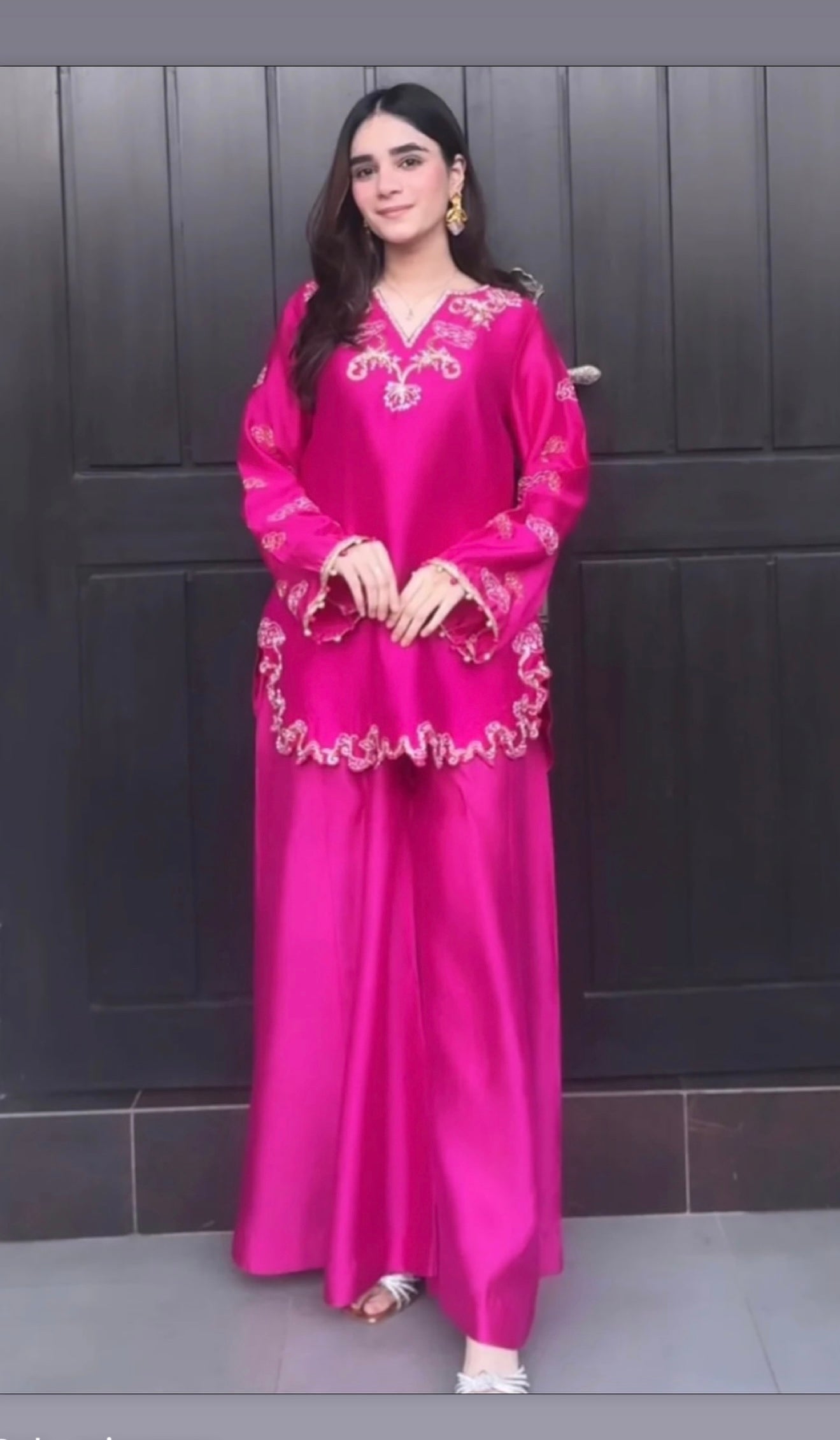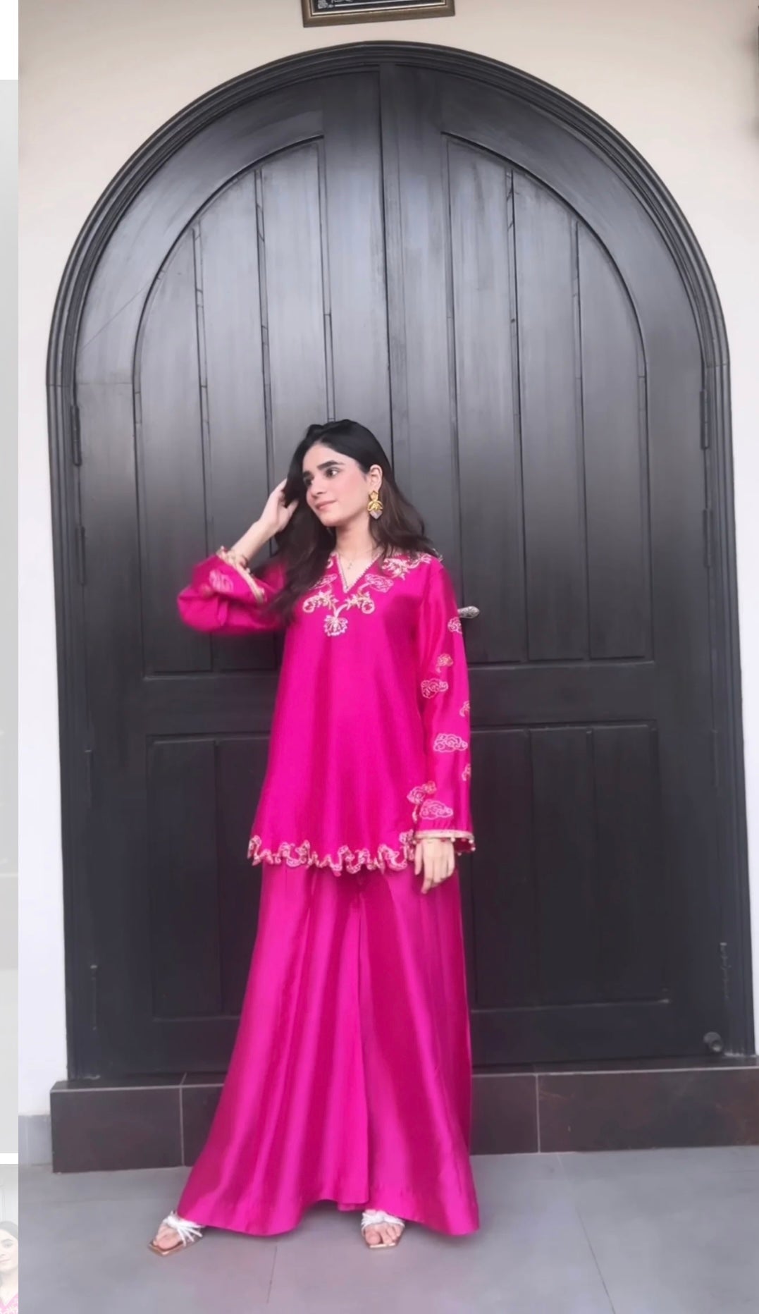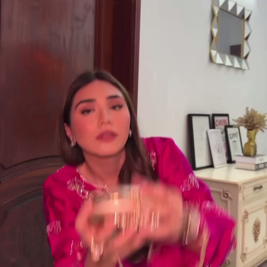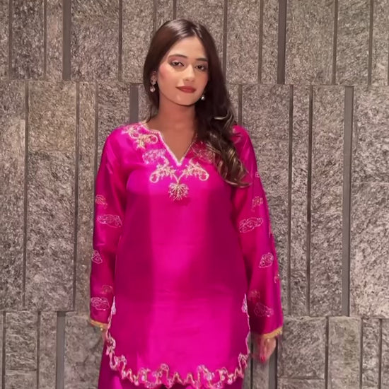 Raspberry is a contemporary statement piece, designed for those who embrace modern elegance. It features a chic, short-cut shirt paired with effortlessly flowy pants. The shirt is adorned with exquisite Japanese cutdana work. Dupatta is included.