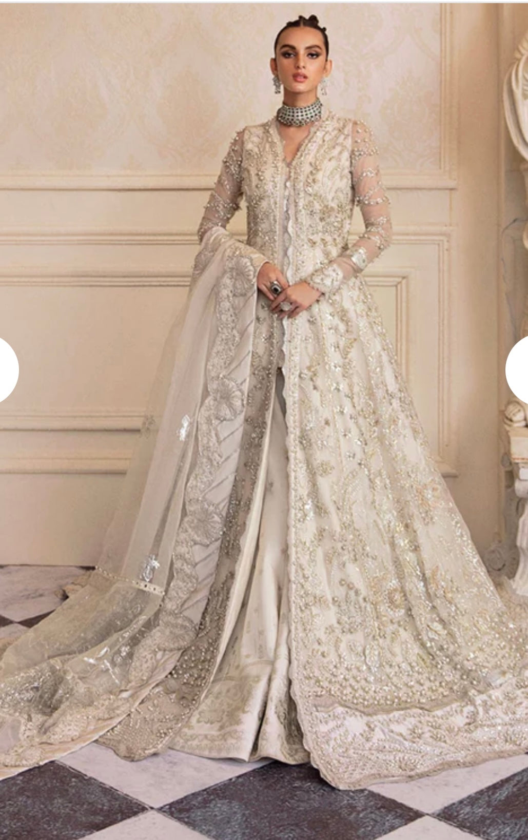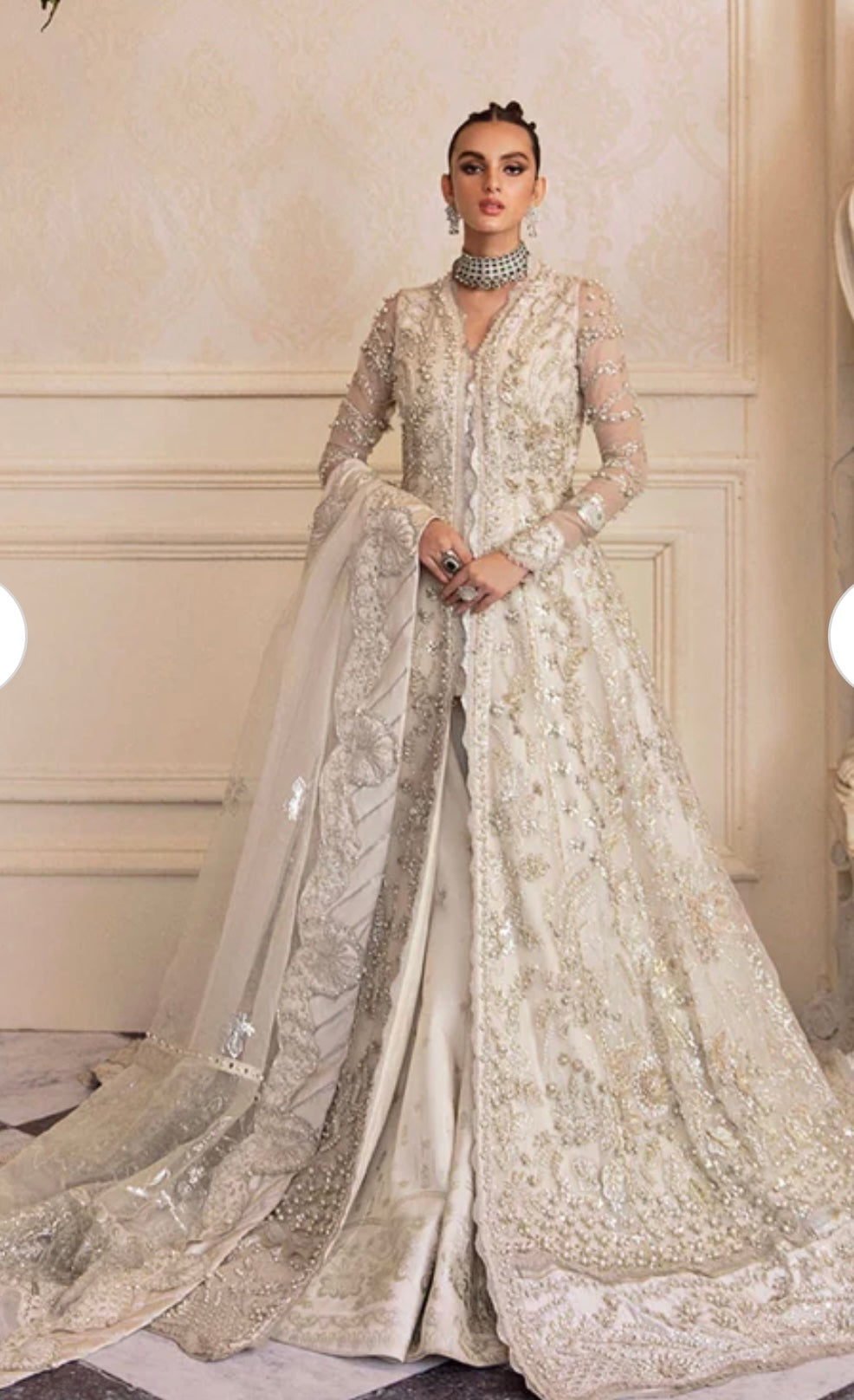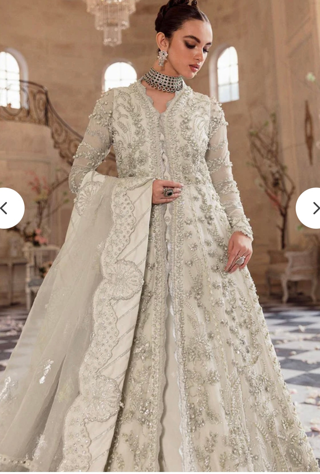 1-Organza Sequin Embroidered Front Open Maxi, adorned with intricate handcrafted Adda work.